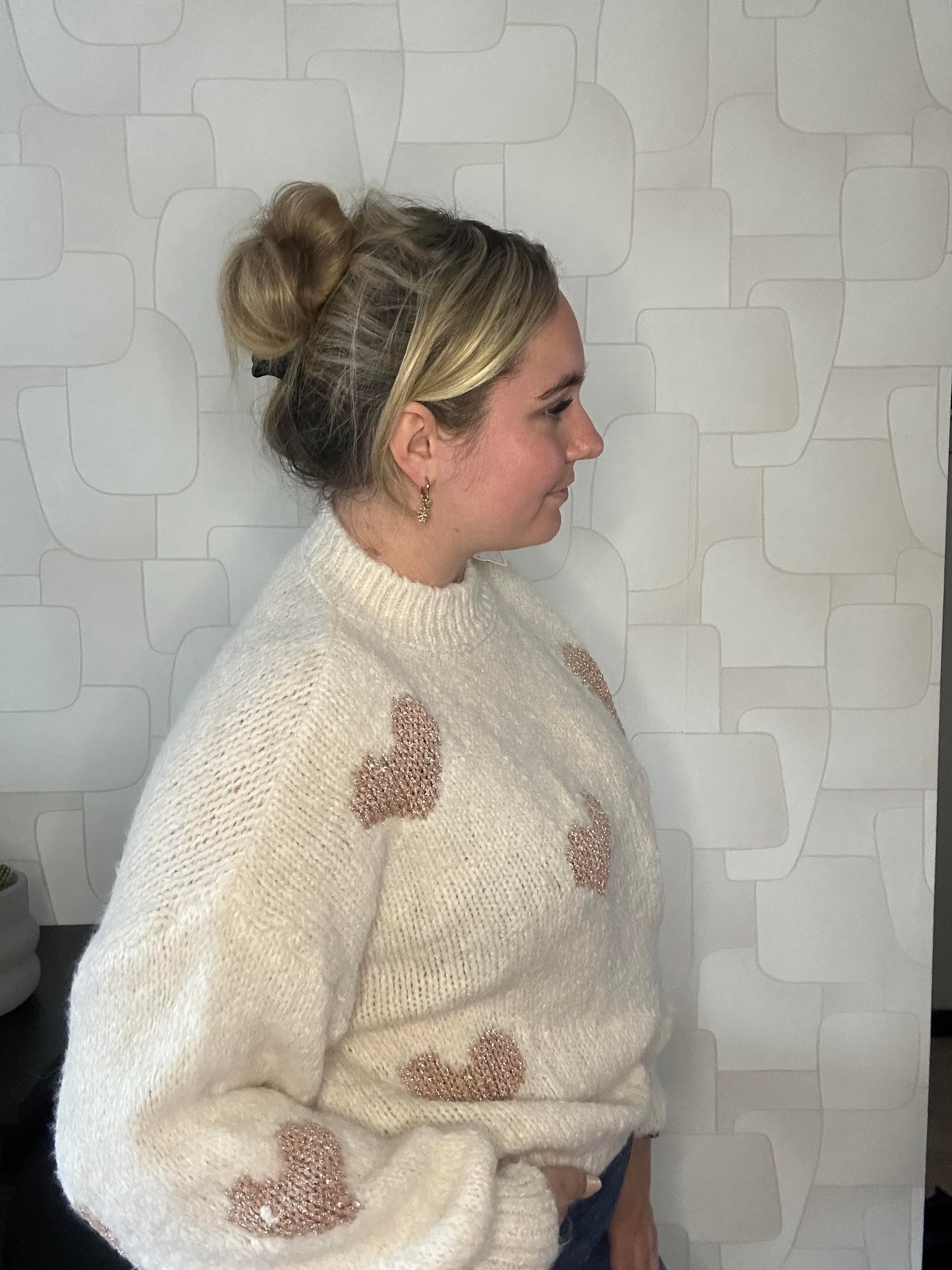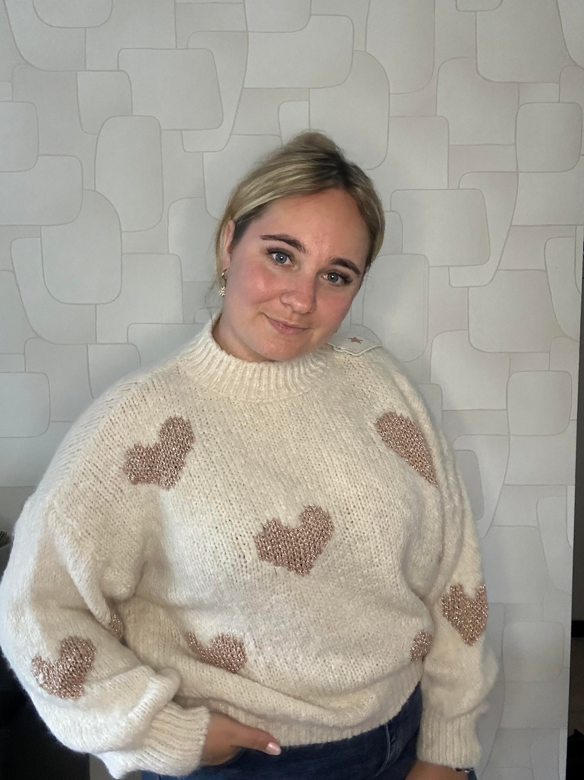 Deze heerlijk warme en trendy trui met hartjes patroon kan deze herfst niet missen in je garderobe, gemaakt van Acryl: 65% , Polyamide: 17% , Wol: 9% , Viscose: 9%.