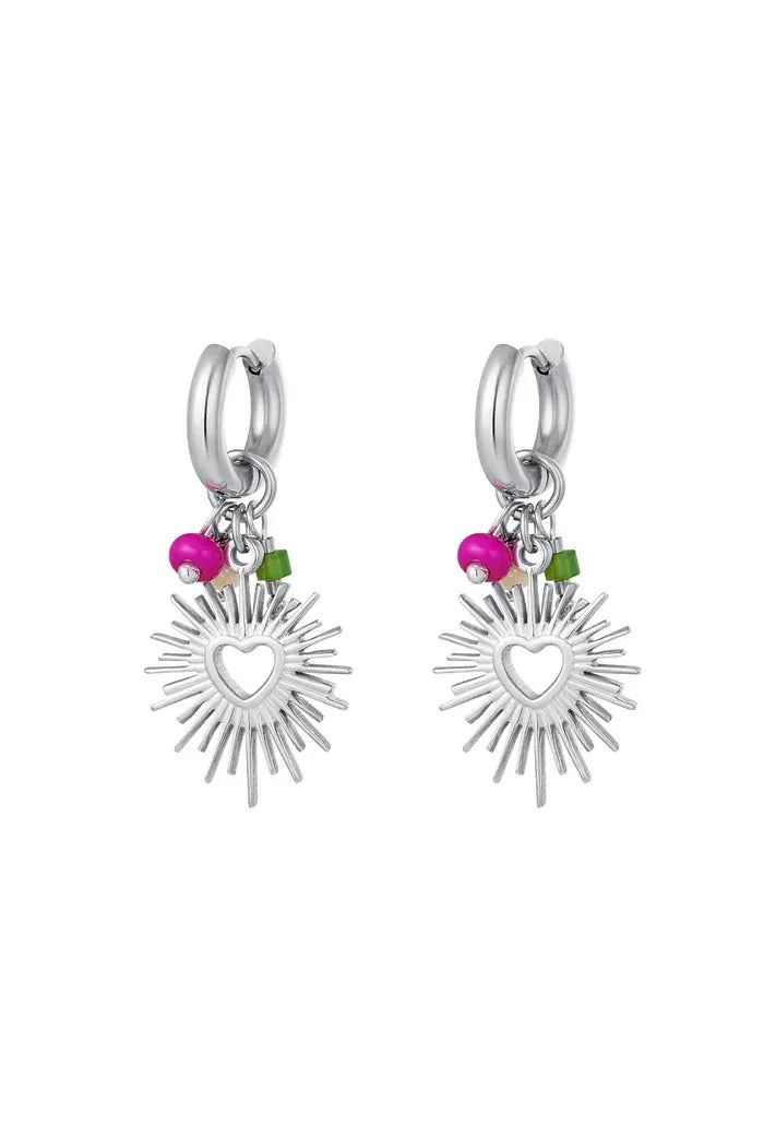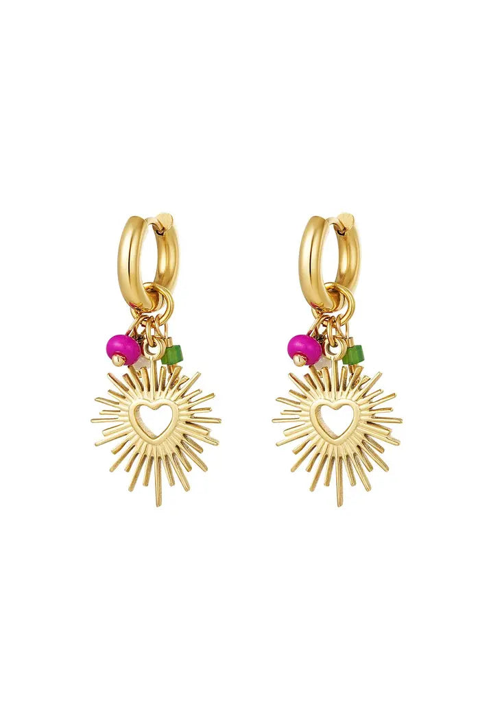 Deze oorbellen zijn gemaakt van stainless steel in de kleur goud in combinatie met glaskralen in de kleur roze groen en beige. De oorbellen zijn 3,7 cm lang. Ben jij team zilver? Geen probleem! Oorbellen met hart en kralen is ook in het zilver verkrijgbaar! Shop nu jouw favoriete kleur!