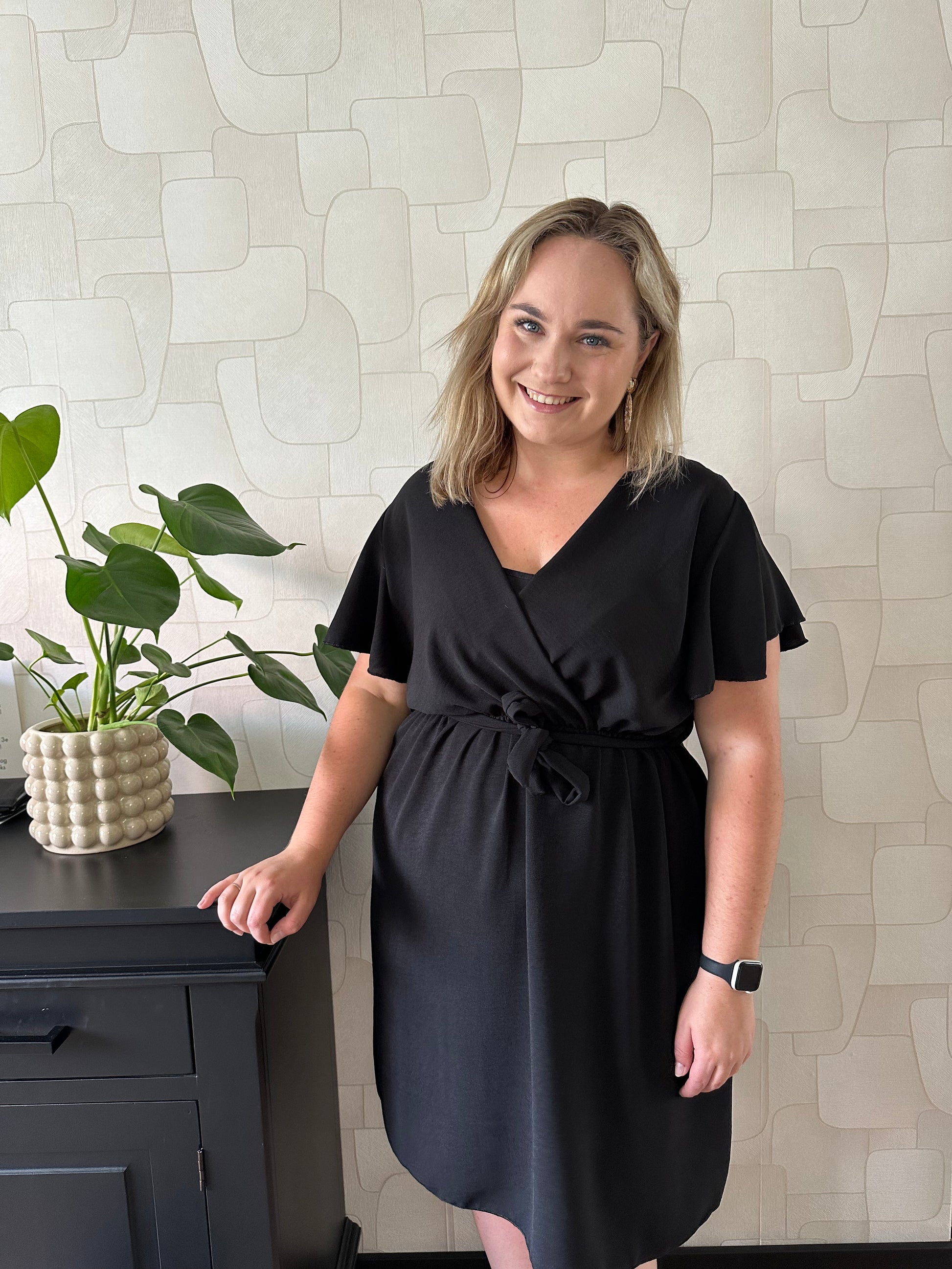 Dit elegante zwarte jurkje, ideaal voor elke gelegenheid. tijdloos en chique, met een comfortabele pasvorm.
